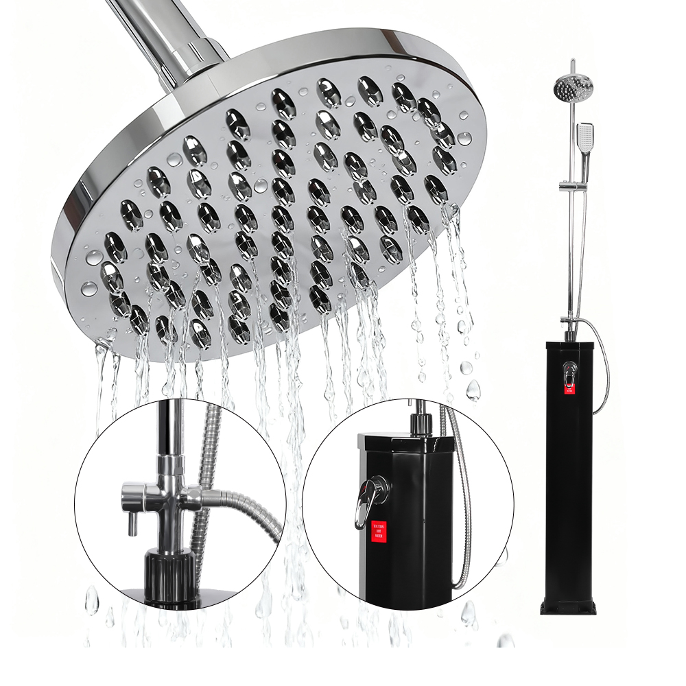 Этот солнечный душ из ПВХ LY18L09-B объемом 18 л у бассейна с передвижным верхним душем из нержавеющей стали предназначен для обеспечения комфорта и расслабления в различных условиях на открытом воздухе, будь то в саду, у бассейна или в походе, предлагая современное решение для наслаждения горячей водой без необходимости использования внешних источников энергии. Он оснащен увеличенной насадкой для тропического душа со встроенным шаровым шарниром, который позволяет легко регулировать угол до 180°, обеспечивая гибкость в использовании и упрощая настройку. Гибкая насадка для душа в стиле тропического леса усиливает ощущения, позволяя вам легко контролировать поток воды, создавая успокаивающее ощущение спа, похожее на пребывание под естественным водопадом. Вместе эти функции обеспечивают освежающий и настраиваемый душ, что делает его идеальным для тех, кто ищет практичность и отдых на свежем воздухе.