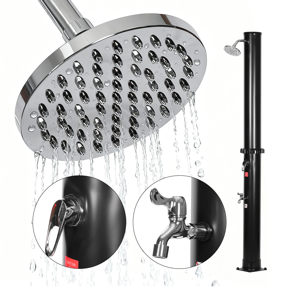 Этот садовый солнечный душ LY35L01 с душевой трубкой большой емкости предназначен для семейного использования на открытом воздухе и оснащен душевой трубкой большого размера, которая может нагревать воду примерно до 60 ° C при ярком солнечном свете, не требуя электричества. Просто подсоедините стандартный садовый шланг, чтобы заполнить душевую трубу, и каждый сможет насладиться освежающим душем в саду, у бассейна или в кемпинге. Для дополнительного удобства он оснащен встроенным металлическим поддоном для хранения геля для душа или других мелких предметов под рукой, а дренажное отверстие внизу обеспечивает плавный поток воды и предотвращает застаивание воды. Когда душ не используется, его можно легко разобрать для компактного хранения, что делает его практичным для сезонного использования или транспортировки в другое место.