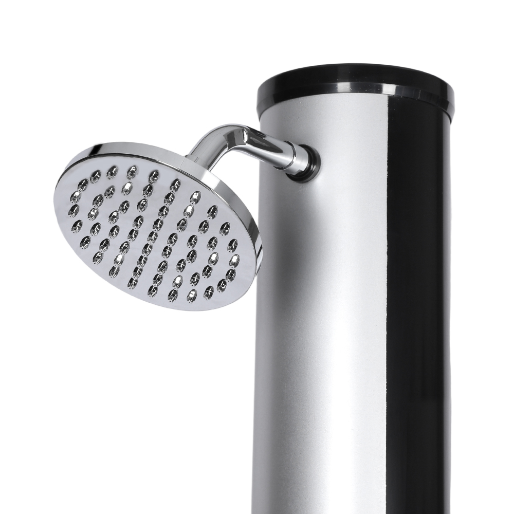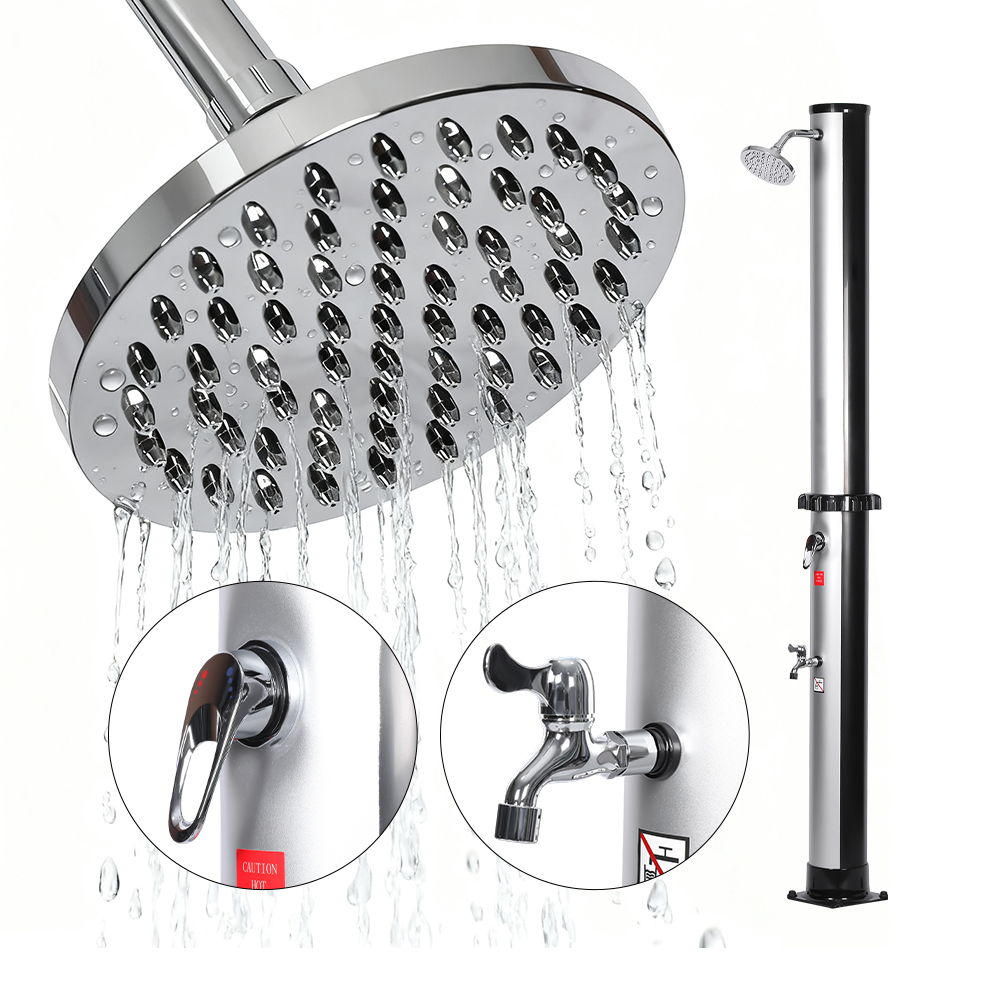 Этот регулируемый и водонепроницаемый солнечный душ LY35L02-CR сочетает в себе практичность и комфорт. Он оснащен большой душевой трубой, которая нагревается примерно до 60°C за счет использования только солнечного света, что исключает необходимость в электричестве. Просто прикрепите обычный садовый шланг, чтобы наполнить душевую трубу, и вся семья сможет легко наслаждаться освежающим душем на открытом воздухе в саду, у бассейна или во время кемпинга. Удобный металлический поддон позволяет легко достать необходимые для купания предметы, такие как мыло или шампунь, а продуманный сливной канал внизу предотвращает скопление воды, сохраняя чистоту и безопасность помещения. Регулируемая насадка для душа повышает комфорт и обеспечивает гибкое управление струей воды, позволяя вам адаптировать поток в соответствии с вашими личными предпочтениями. Его струя в стиле тропического леса обеспечивает успокаивающее и естественное ощущение под душем, превращая каждое полоскание в момент релаксации.