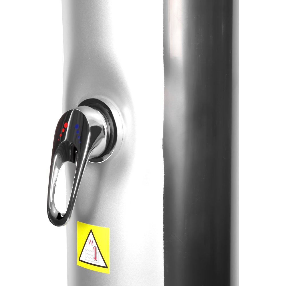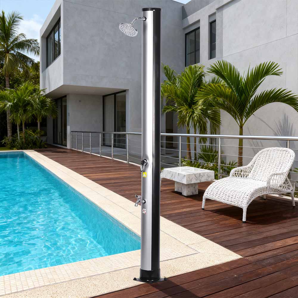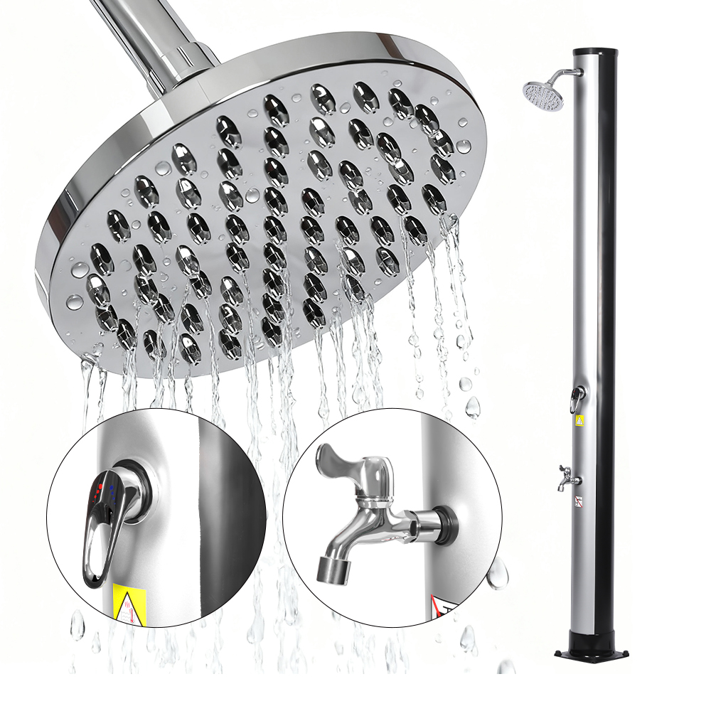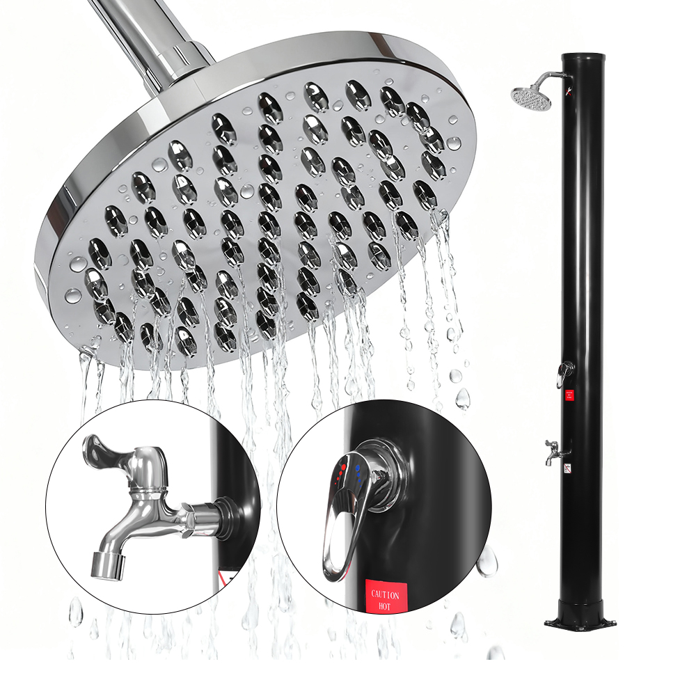 Просторная душевая трубка этого портативного экологически чистого солнечного душа для улицы LY35L06 использует энергию солнца для нагрева воды до 60°C, не требуя электричества и предлагая экологически чистое решение для купания на открытом воздухе. Просто подсоедините стандартный садовый шланг и наполните душевую трубу, и вся семья сможет наслаждаться бодрящим душем в саду, у бассейна или в походе. Практичный встроенный металлический поддон позволяет легко достать все необходимое для душа, например мыло и шампунь, а дренажные прорези внизу предотвращают скопление воды, обеспечивая чистоту и приятное ощущение. Вращающаяся на 360° насадка для тропического душа, установленная на интегрированном шаровом шарнире, позволяет легко регулировать направление потока воды, создавая приятное ощущение охлаждения, а дополнительный кран для ополаскивания ног обеспечивает удобный способ быстро освежиться. Созданный для удобства, этот душ можно легко разобрать для компактного и компактного хранения в межсезонье или для транспортировки в путешествии.