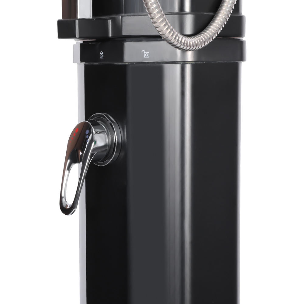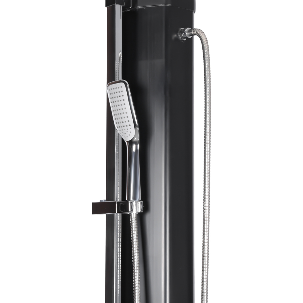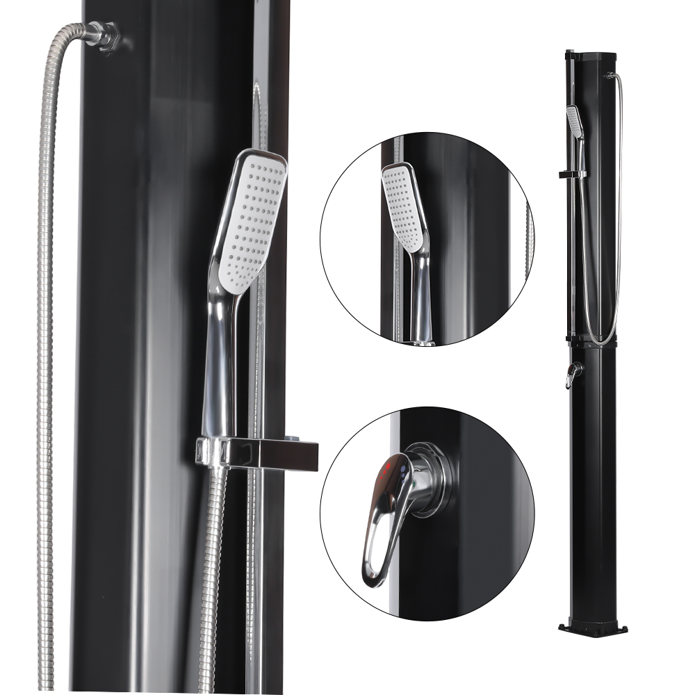 Этот стабильный и эффективный садовый солнечный душ LY35L08-HB эффективно работает, используя солнечный свет. Его большая душевая труба объемом 35 литров нагревает воду примерно до 60°C при достаточном солнечном свете. Заправка проста, не требует электричества и может быть легко осуществлена путем подключения к стандартному садовому шлангу. Его большая насадка для тропического душа обеспечивает комфортное охлаждение, а встроенный шаровой шарнир позволяет поворачивать его на 180° под разными углами. Установка также очень удобна. Вся конструкция изготовлена из прочного пластика, устойчивого к ультрафиолетовому излучению и эффективно выдерживающего длительное воздействие на открытом воздухе. Насадка для душа быстро разбирается для удобной транспортировки между местами или хранения в межсезонье. Прочное металлическое основание обеспечивает устойчивость и безопасность после установки, позволяя вам наслаждаться комфортным душем на открытом воздухе в саду, у бассейна или в кемпинге.