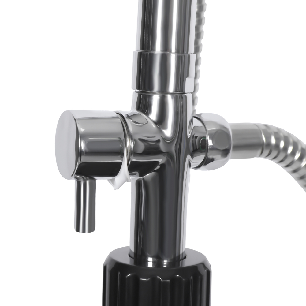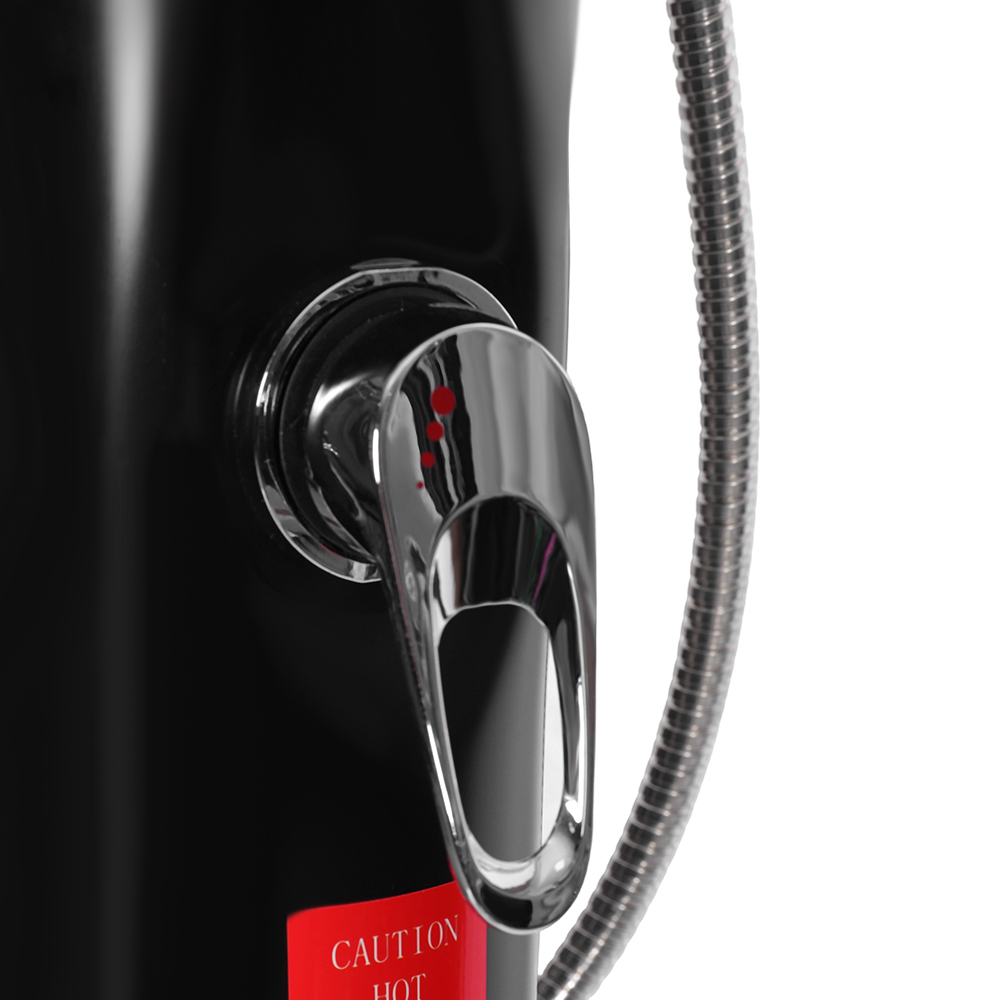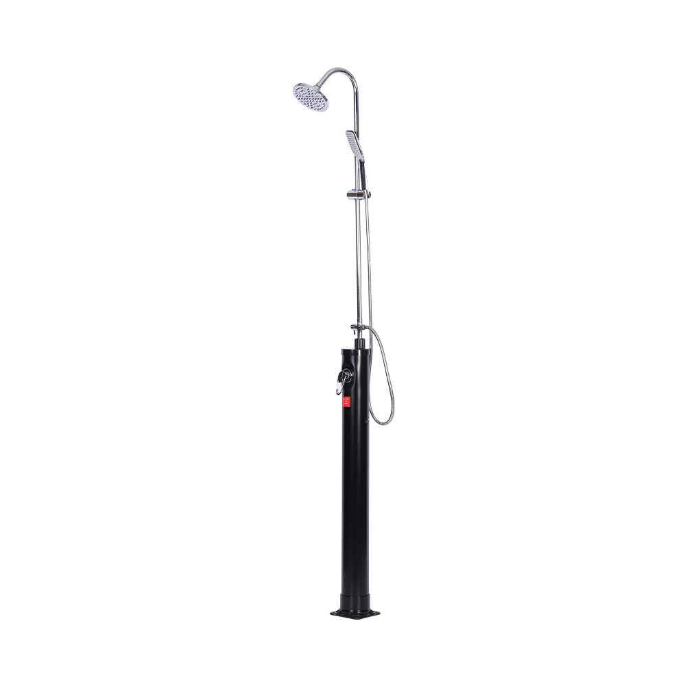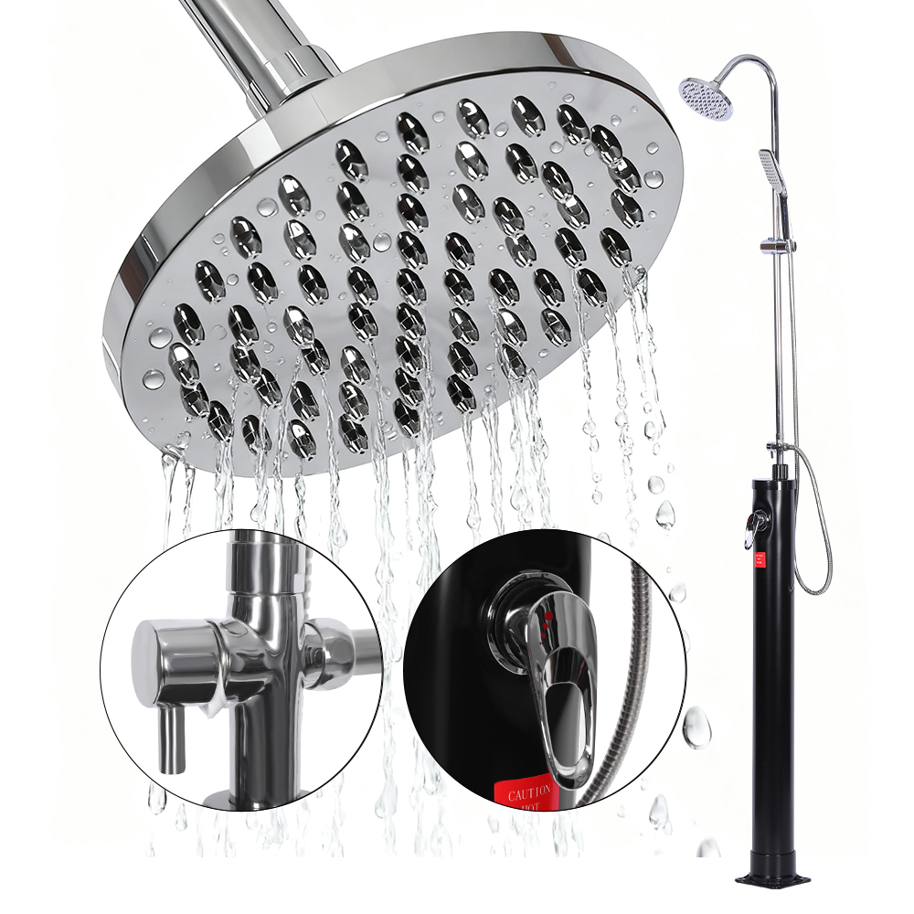 Душевая колонна с солнечной колонкой для открытого садового бассейна LY08L03 объемом 8 л оснащена однорычажным смесителем, который точно регулирует температуру воды, смешивая теплую воду из душевой трубы с холодной водой из садового шланга. Он оснащен садовым шлангом для удобного наполнения и сливной пробкой, позволяющей полностью слить воду для безопасного хранения в зимнее время. Отдельные части душа, построенного на прочном основании из нержавеющей стали для обеспечения устойчивости, надежно закреплены винтами, а для безопасного использования его необходимо закрепить на земле. Инструкции по эксплуатации включены в комплект поставки и доступны на нескольких языках.